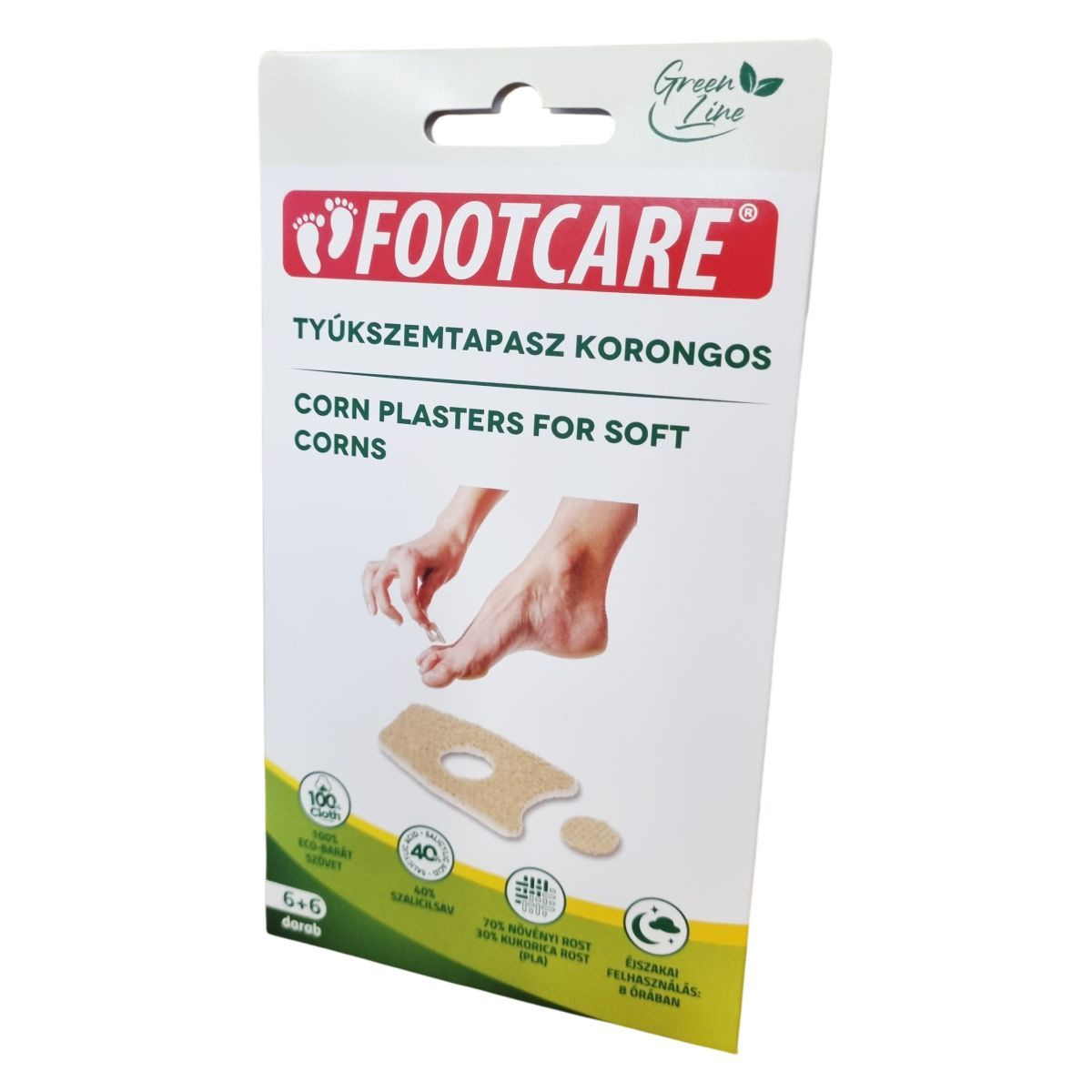 A Green Line FOOTCARE® tyúkszemtapasz egy kör alakú plaszter, mely puha tyúkszemek gyors eltávolítására szolgál, főként a lábujjak közötti területeken. A tapasz 40% szalicilsavat tartalmaz, amely hatékonyan segíti a bőrkeményedés puhítását és eltávolítását. A termék 100% környezetbarát szövetből készült, amely biztosítja a kényelmes és biztonságos használatot. A korongok 70% növényi és 30% kukorica eredetű rostból állnak, amelyek biológiailag lebomlóak. A használat során fontos a láb áztatása és szárítása, majd a korong felhelyezése a tyúkszemre úgy, hogy az aktív hatóanyag közvetlenül érintkezzen a kemény bőrrel. A korongot naponta kell cserélni legalább 2-3 napon keresztül. A termék nem alkalmas hosszan tartó kezelésre, mivel érzékenységet válthat ki. Nem használható gyulladt, sérült vagy repedezett bőrön, valamint olyan bőrfelületen, ahol nincs szemölcs. A termék kizárólag külső használatra készült és gyermekektől távol kell tartani.