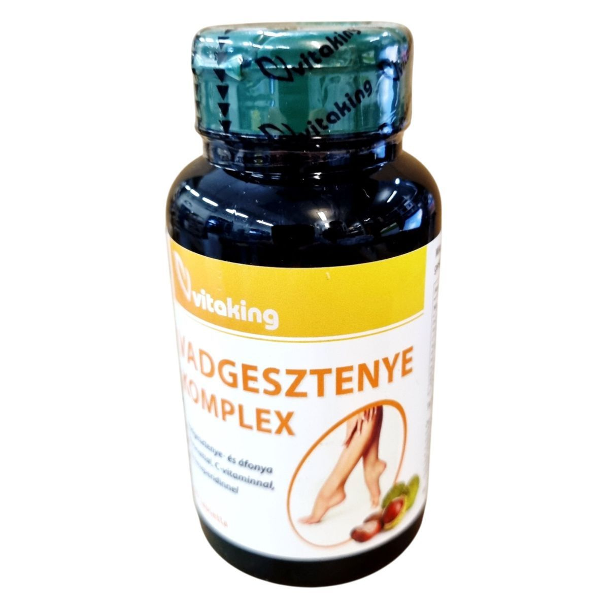 A Vitaking Vadgesztenye Komplex étrend-kiegészítő mikronizált diozmint, heszperidint, C-vitamint, vadgesztenye- és áfonya kivonatot tartalmaz. A vadgesztenye kivonat segíthet csökkenteni a „nehéz láb” érzést, és támogathatja a vénás keringést. A C-vitamin hozzájárulhat a normál kollagénképződéshez, amely az erek normál szerkezetéhez szükséges, és támogathatja a sejtek oxidatív stresszel szembeni védelmét. A termék 60 tablettát tartalmaz, és napi egy tabletta fogyasztása ajánlott.