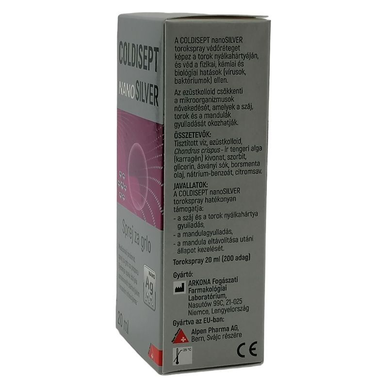 A Coldisept NanoSilver torokspray védőréteget képezhet a torok nyálkahártyáján, és védhet a fizikai, kémiai és biológiai hatások (vírusok, baktériumok) ellen. Orvostechnikai eszköz.