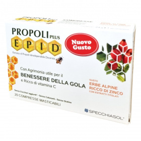 EPID propolisz kivonatot tartalmazó szopogató étrend-kiegészítő tabletta alpesi gyógynövényekkel, cinkkel, C-vitaminnal és édesítőszerrel. Szabadalommal védett EPID® propolisz kivonattal az immunrendszer erősítéséért és a fáradtság csökkentéséért. Titrált és standardizált polifenol tartalommal. Apróbojtorjánnal a szervezet ellenállóképességéért. C-vitaminnal és cinkkel az immunrendszer normál működéséhez és a kifáradás csökkentéséhez. Nem tartalmaz mesterséges színezékeket és tartósítószert.