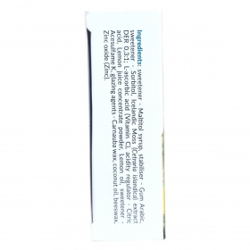 édesítőszer – maltitol szirup, stabilizátor – gumiarábikum, édesítőszer – szorbitol, izlandi zuzmó (Cetraria islandica) kivonat, L-aszkorbinsav (C-vitamin), savanyúság szabályozó – citromsav, citromlé porkoncentrátum, citromolaj, édesítőszer – aceszulfám K, fényző anyagok – karnauba viasz, kókuszolaj, méhviasz, cink oxid (cink)