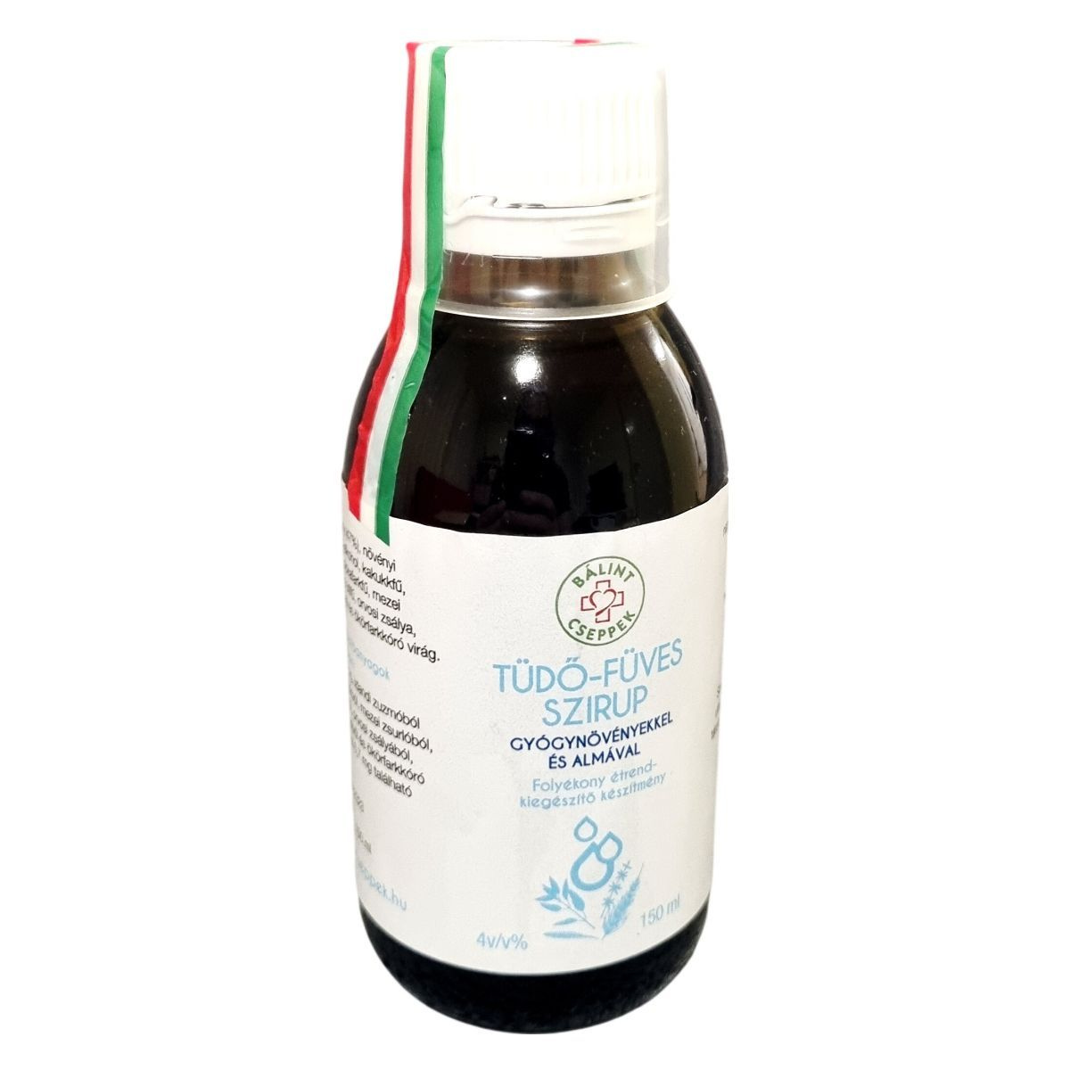 A BÁLINT Cseppek Tüdő-Füves szirup 4 térfogatszázalék alkoholt tartalmazó, növényi alapú folyékony étrend-kiegészítő készítmény, amely gyógynövényekhez, például kakukkfűhöz, izlandi zuzmóhoz, cickafarkfűhöz, mezei zsurlóhoz és másokhoz valamint 47%-os almalé sűrítményhez készül. A napi 7 ml-es adag gyógynövényenként kisebb mennyiségű hatóanyagot tartalmaz, amelyek hozzájárulhatnak a légutak egészségéhez. A termék szobahőmérsékleten, gyermekektől elzárva tárolandó. Nettó térfogata 150 ml, Magyarországon gyártották és forgalmazzák.