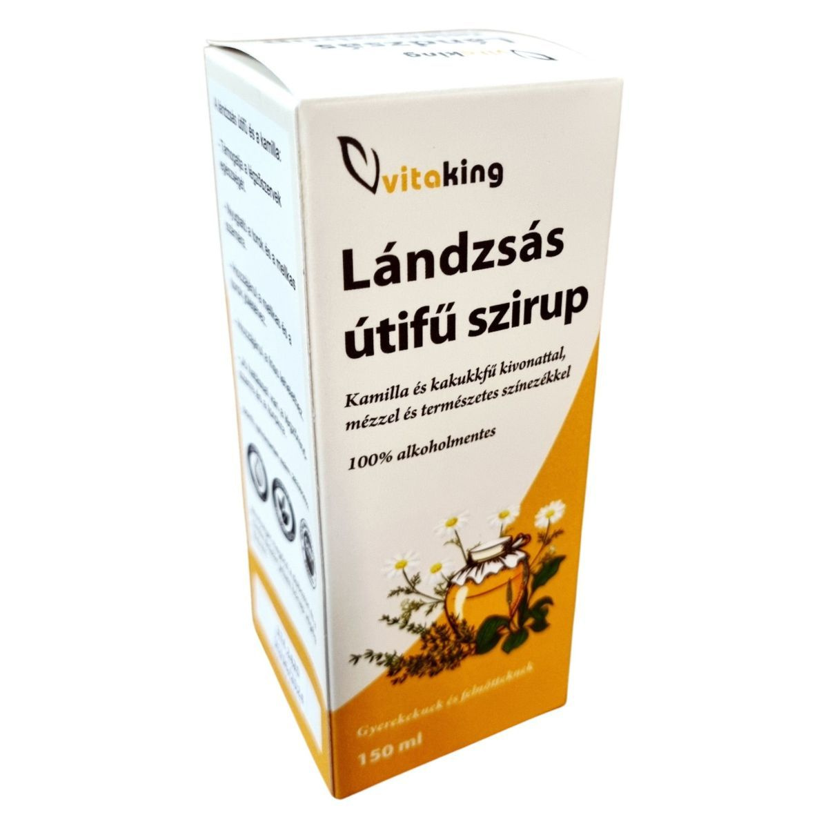 A Vitaking Lándzsás útifű szirup egy gyógynövénykivonatokat tartalmazó étrend-kiegészítő, amely mézzel és cukorral készült. A termék lándzsás útifű, kamilla és kakukkfű kivonatokat tartalmaz, amelyek hozzájárulhatnak a légzőrendszer és a torok jóllétéhez, valamint a friss lehelethez. A szirup 100% alkoholmentes, így gyerekek és felnőttek számára egyaránt alkalmas. A termék minőségét megőrzi a dobozon és a címke oldalán jelzett hónap végéig. A szirupot a Vitaking Kft. forgalmazza, és OGYÉI engedéllyel rendelkezik.