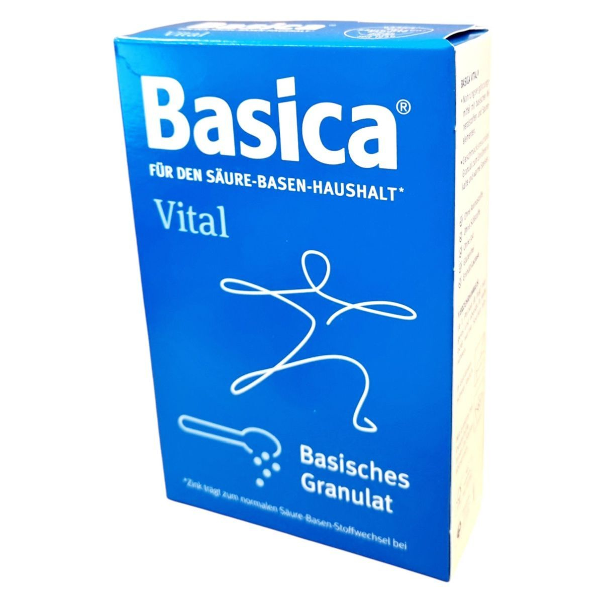 A Basica Vital egy bázikus ásványi anyagokat és nyomelemeket tartalmazó étrend-kiegészítő granulátum, amelyet hideg vagy meleg ételekbe keverve lehet fogyasztani. A termék cinket, magnéziumot, kalciumot, vasat, rezet, krómot, molibdént és szelént tartalmaz, amelyek hozzájárulhatnak a normál sav-bázis egyensúly fenntartásához, a fáradtság csökkentéséhez, a normál szellemi működés fenntartásához, valamint a sejtek oxidatív stresszel szembeni védelméhez. A termék gluténmentes, de laktózt tartalmaz, és nem tartalmaz aromákat, édesítőszereket vagy jódot. A praktikus adagoló a doboz belső oldaláról választható le. A termék gyártója a Protina Pharm. GmbH, forgalmazója a Dr. Kocsis & Hoffmann Pharma Kft.