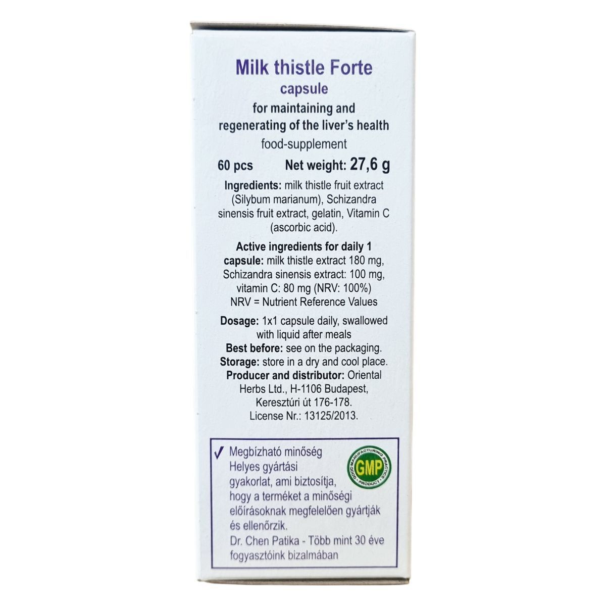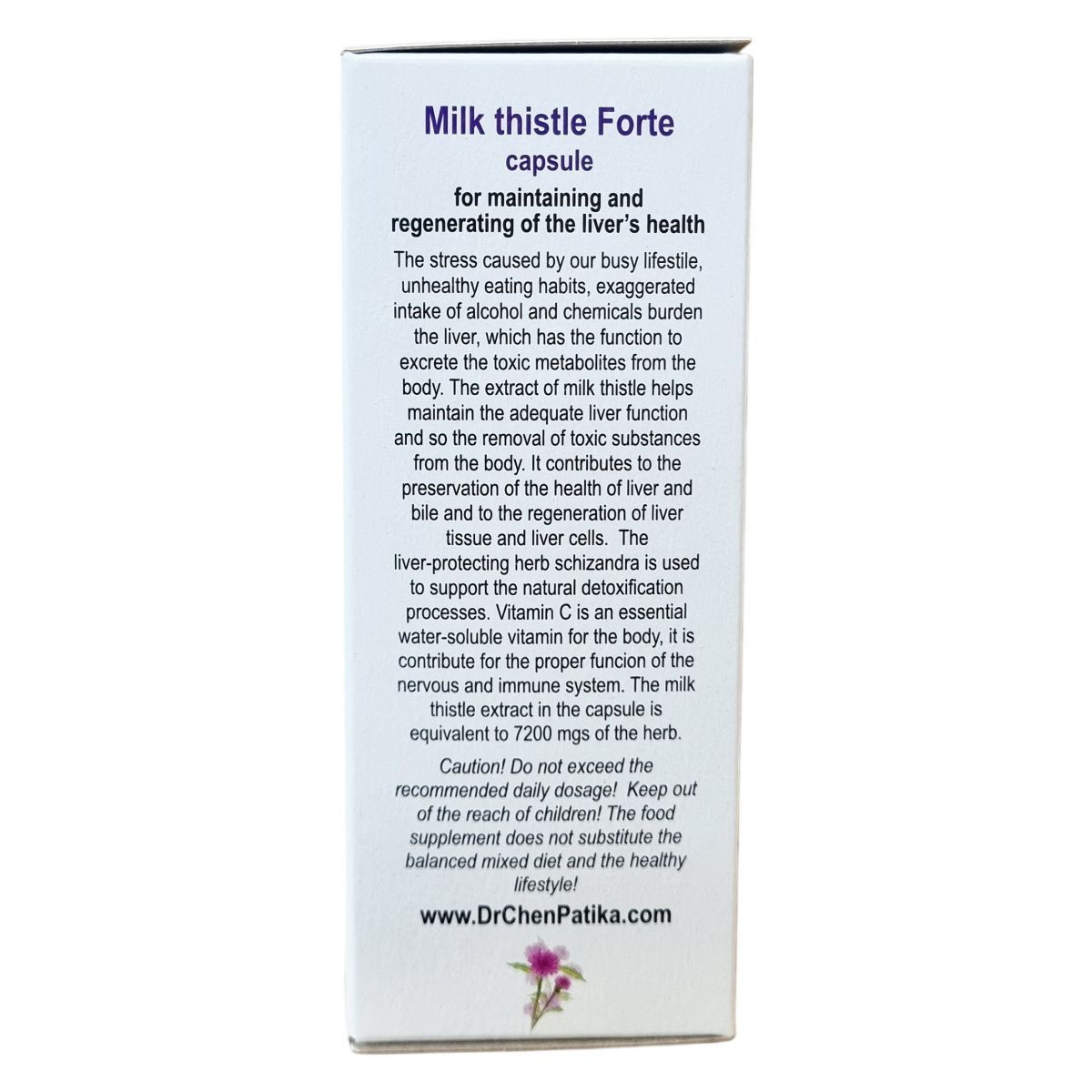 Napjaink rohanó életvitelével járó stressz, egészségtelen táplálkozás, túlzott alkohol- és kemikáliafogyasztás megterheli a májat, amelynek szerepe a toxikus salakanyagok szervezetből való kiválasztása. A máriatövis kivonata segítheti a megfelelő májfunkció fenntartását, ezzel elősegítve a toxikus anyagok eltávolítását. Támogathatja a máj és az epe egészségének megőrzését, valamint a májszövet és a májsejtek regenerálódását. A schizandra gyógynövény segítheti a természetes méregtelenítő folyamatokat. A C-vitamin vízben oldódó vitamin, amely hozzájárulhat az immunrendszer és az idegrendszer megfelelő működéséhez. A kapszulában található máriatövis kivonat 7200 mg gyógynövénynek felel meg. A termék GMP minősítéssel rendelkezik, mely biztosítja a helyes gyártási gyakorlatot, és több mint 30 éve jelen van a fogyasztók bizalmában.