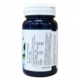 A BIO CHLORELLA tabletta 150 darabos kiszerelésben, összesen 60 g tömegben kerül forgalomba. A termék biogazdálkodásból származó Chlorella Vulgaris mikroalga port tartalmaz, mely 400 mg hatóanyagot biztosít tablettánként. Az energia- és tápérték adatok alapján a termék magas fehérjetartalmú, alacsony zsír- és szénhidráttartalmú. A tablettákat bő folyadékkal, főétkezések előtt célszerű bevenni. Gyermekek elől elzárva kell tartani és az ajánlott napi adag nem léphető túl. A termék tárolására hűvös, száraz, maximum 25 fokos környezet javasolt. Forgalmazója az ODP Vital Kft., a termék rendelkezik a DE-ÖKO-012 és a HU-ÖKO-01/Biokontroll tanúsítványokkal, amelyek igazolják bio minőségét. A termék fogyasztása nem helyettesíti a változatos étrendet és az egészséges életmódot.