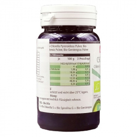 Spirulina, chlorella és zöldárpa gyógynövényeket tartalmazó komplex bio készítmény.