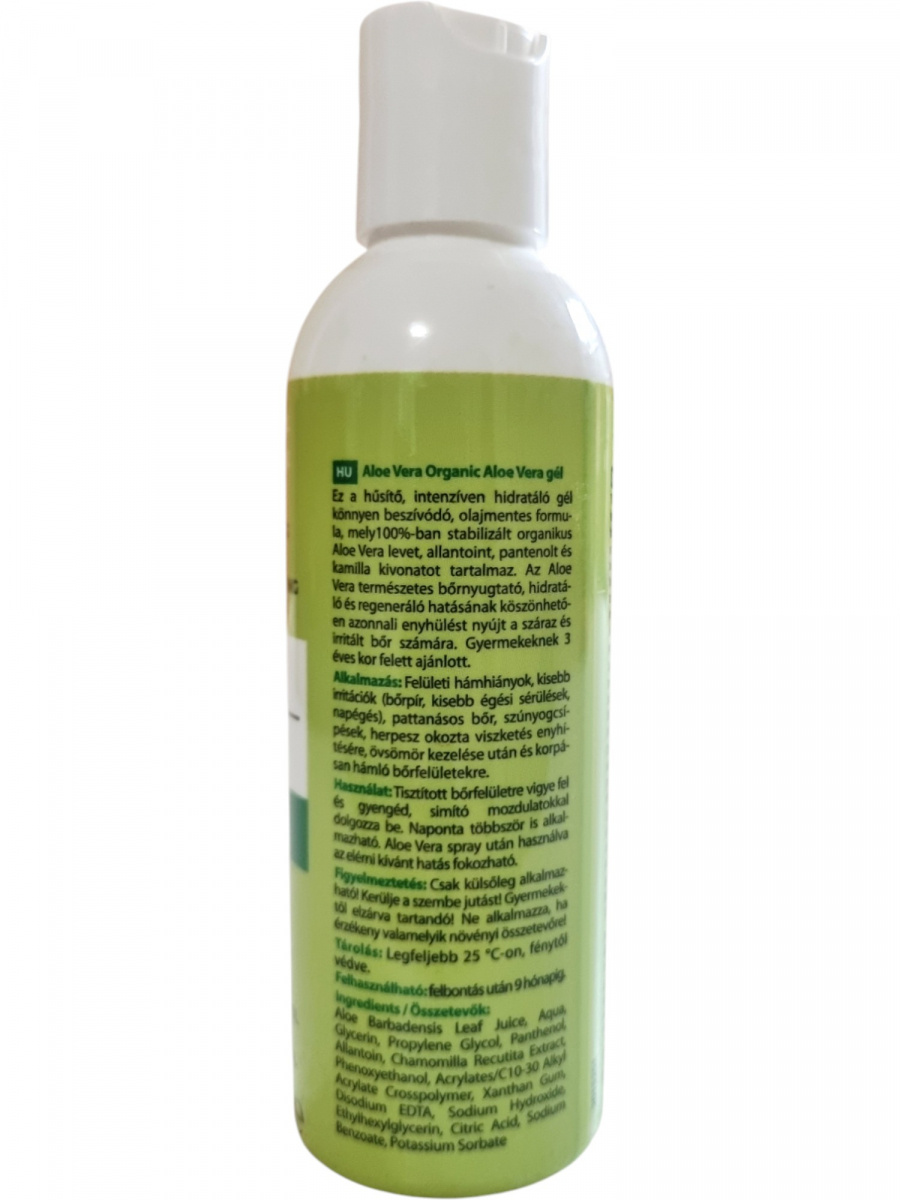 Ez a hűsítő, intenzíven hidratáló gél könnyen beszívódó, olajmentes formula, amely 100%-ban stabilizált organikus Aloe Vera levet, allantoint, panthenolt és kamilla kivonatot tartalmaz.