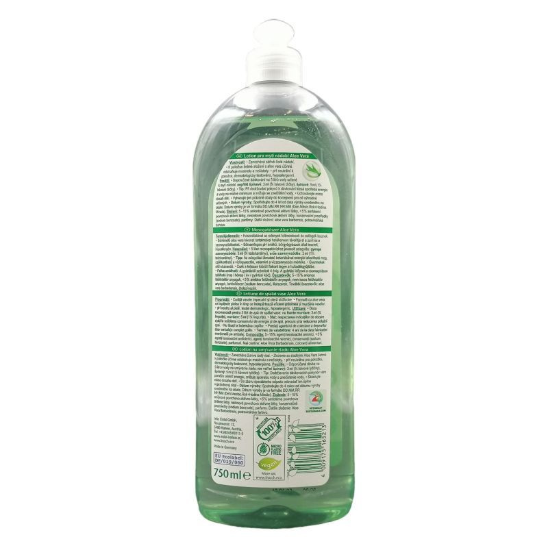 A mosogatószerben található Aloe Vera kivonat biztosítja, hogy kezének bőre ne száradjon ki mosogatás közben.