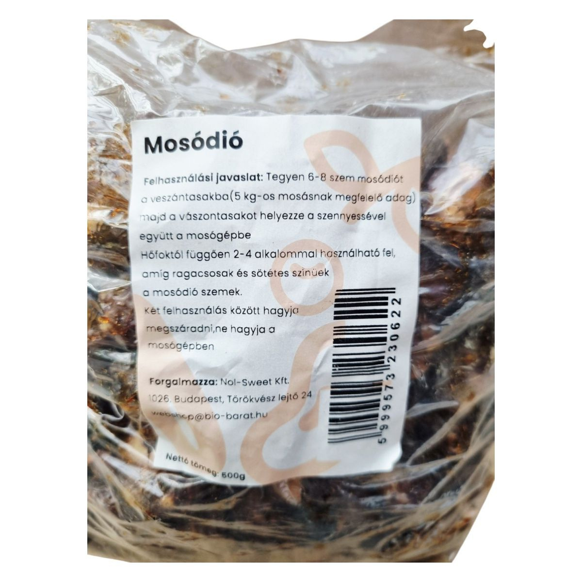 Alkalmazás / Használat:Tegyen 6-8 szem mosódiót a vászonzsákba (5 kg-os mosásnak megfelelő adag), majd a vászonzsákot helyezze a szennyesével együtt a mosógépbe. Hőfoktól függően 2-4 alkalommal használható fel, amíg ragacsosak és sötétes színűek a mosódió szemek. Két felhasználás között hagyja megszáradni, ne hagyja a mosógépben.
