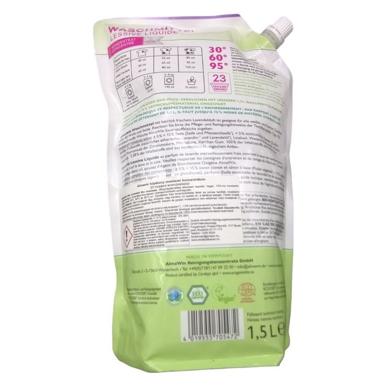 Ecogarantie által minősített öko mosószer. Hatékony mosás 30°C, 60°C és 95°C-on pamut és kevert szálas ruhákhoz.