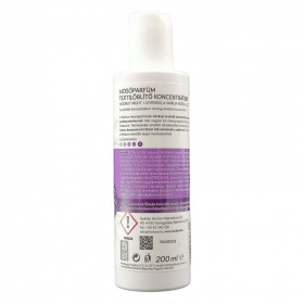 A levendula találkozása az elegáns rózsával. Egyedisége, hogy nemcsak illatosít, mint általában a mosóparfümök, hanem növényi eredetű textil kondicionáló, lágyító alapanyagokat tartalmaz, melyek a vegyi öblítőkben használt szintetikus kationos tenzidek környezetbarát és egészséges alternatívái. Gazdaságos és tudatos választás, hiszen a 200 ml-es kiszerelés 40 mosáshoz elegendő.