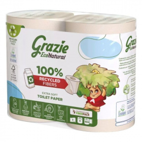 A Grazie Natural papírtermékek öko technológiával, Tetra Pak ital és élelmiszer dobozokból, átlagosan 74% karton vagy cellulóz szálakból, 22% polietilénből és 4% alumíniumból készülnek.
