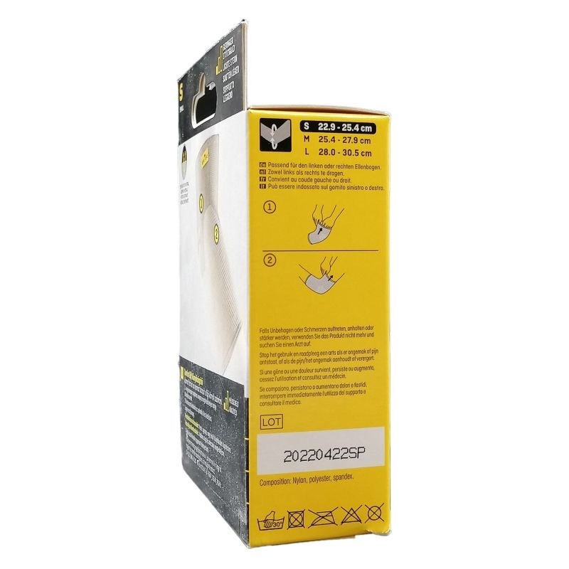 S (23,0-25,5 cm). Csak egyszerűen húzza fel a könyökrögzítőt mindennapi tevékenységei előtt. Foglalkozzon azokkal a dolgokkal, amiket szeret! Speciális jellemzők: Duplán rugalmas, erős kötött anyag az optimális illeszkedésért és kényelemért. Alkalmazható: rándulás, húzódás, ízületi gyulladás, duzzanat, ínhüvelygyulladás esetén. Terméktípus: Zárt. Termékjellemzők és termékelőnyök: Tartást és védelmet nyújt, tehermentesít. A sima, egyszerű design követi a könyök formáját és ruha alatt sem látszik. Légáteresztő, duplán rugalmas anyaga puha és könnyű viseletet biztosít egész nap. Egész napos, kényelmes viseletre készült a puha, könnyű, légáteresztő anyagának köszönhetően. Egyszerű le- és felvenni. Jobb és bal könyökön egyaránt alkalmazható.