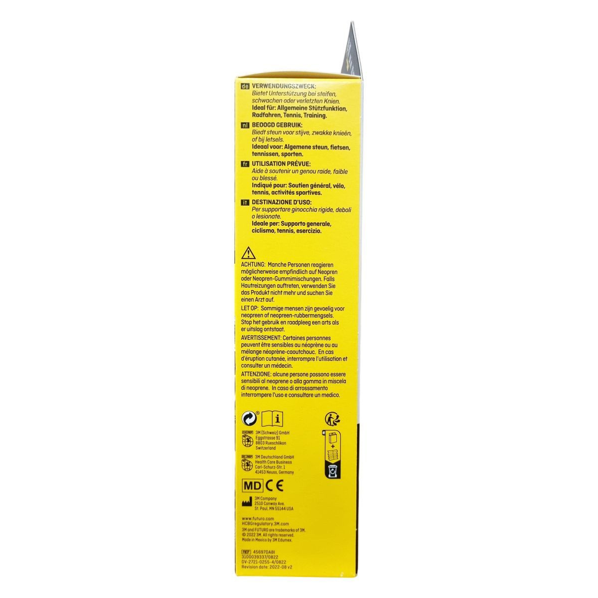 Egyes személyek érzékenyek lehetnek a neoprénre vagy neoprén tartalmú gumis keverékekre. Ha bőrkiütések vagy irritációk jelentkeznek, a termék használatát abba kell hagyni, és orvoshoz kell fordulni.