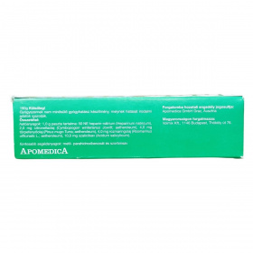 50 NE heparin-nátrium (Heparinum natricum), 2,0 mg citronellaolaj (Cymbopogon winterianus Jowitt; aetheroleum), 4,0 mg törpefenyőolaj (Pinus mugo Turra; aetheroleum), 4,0 mg rozmaringolaj (Rosmarinus officinalis L.; aetheroleum), 10,0 mg szalicilsav (Acidum salicylicum) 1,0 g paszta tartalomban.