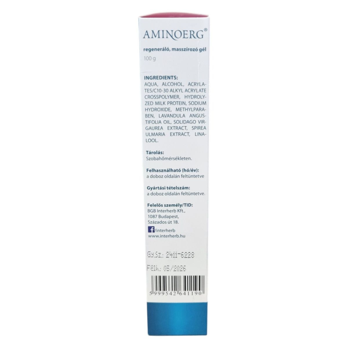 Az AMINOERG® regeneráló masszírozó gél a tejfehérje hidrolizátum (Hydrolactin) esszenciális aminosav komponensei révén hozzájárulhat a bőr hámrétegének anyagcseréjének serkentéséhez. A gél gyógynövény komponensei támogathatják az aminosavak felszívódását, javíthatják a sejtszintű anyag- és oxigénellátást, valamint gyulladáscsökkentő hatásúak lehetnek. A termék felszívódást követően nem hagy foltot a ruházaton. A felhasználhatóság és a gyártási tételszám a doboz oldalán található.