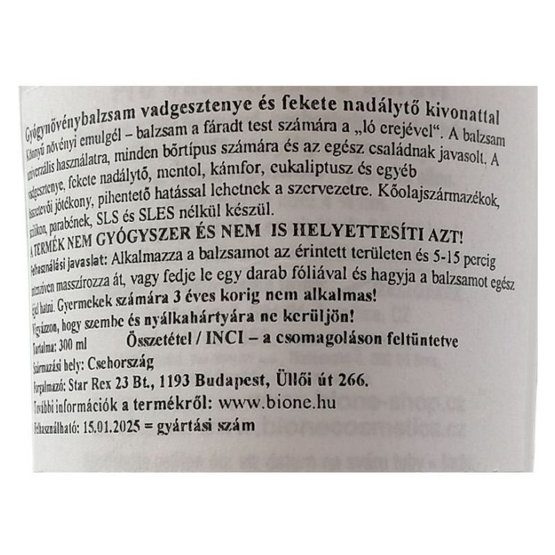 Könnyű növényi emulgél - balzsam a fáradt test számára a "ló erejével“, vadgesztenye és fekete nadálytő hozzáadásával.