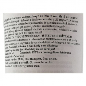 Amennyiben mozgásszervi gondoknál alkalmazná, úgy vigye fel a balzsamot az érintett területre és 5-15 percig intenzíven masszírozza át, vagy fedje le egy darab fóliával és hagyja a balzsamot egész éjjel hatni. A balzsam továbbá hidratáló glicerint, shea vajat, pantenolt, allantoint és E-vitamint tartalmaz. Nagyon könnyű és nem irritálja a bőrt. Gyorsan felszívódik és kellemes, zsírmentes érzetet hagy maga után. Kőolajszármazékok, szilikon, parabének, SLS és SLES nélkül készül.
