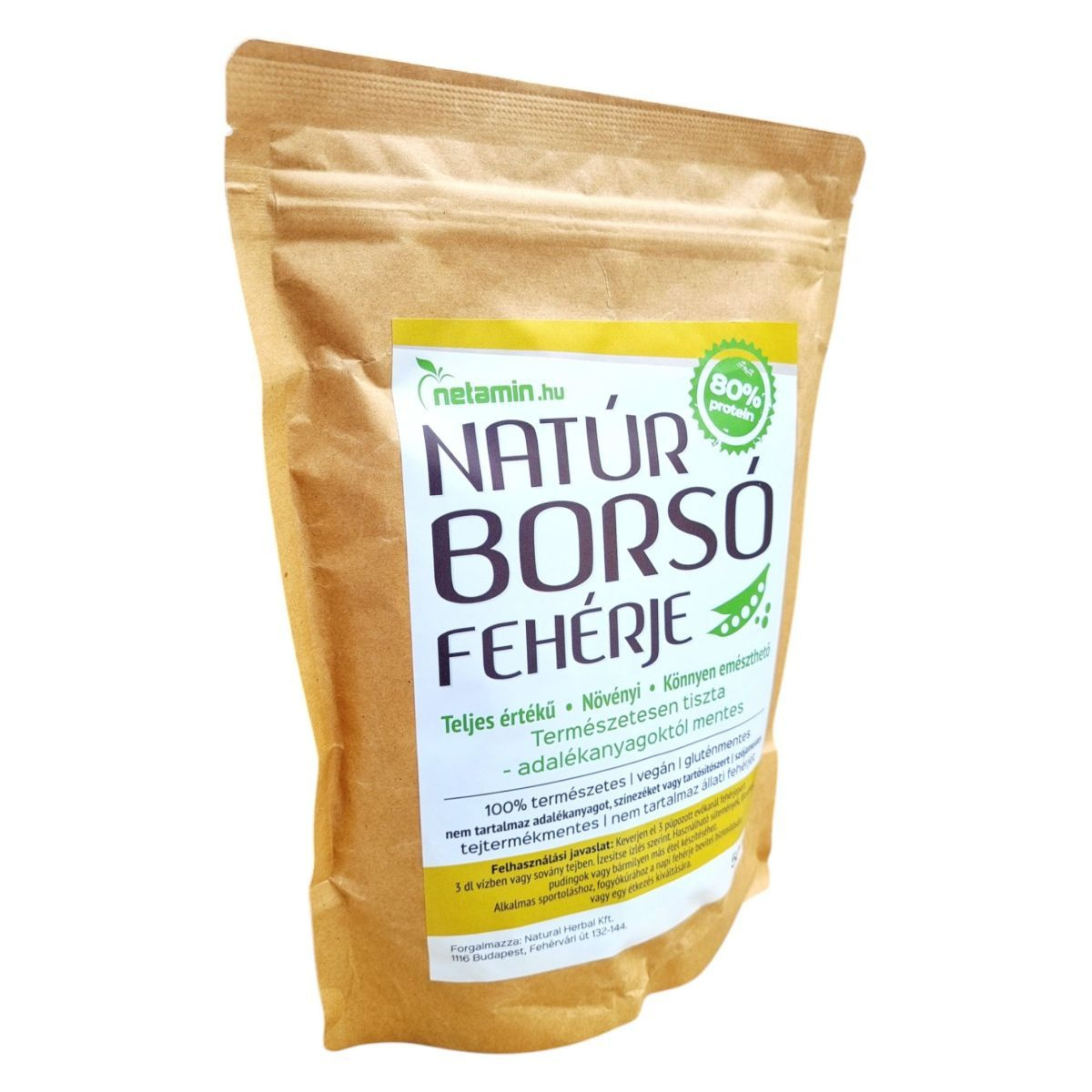 A Netamin Natúr Borsó Fehérje egy 80% fehérjetartalmú, teljes értékű növényi fehérjeforrás, amely adalékanyagoktól mentes. Alkalmas lehet sportoláshoz, fogyókúrához és az egészséges életmód támogatására.