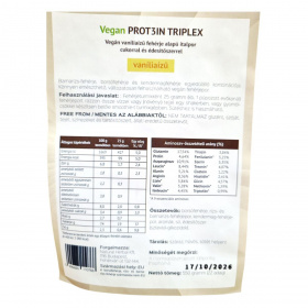 A Vegan PROT3IN TRIPLEX egy prémium minőségű, vegán fehérje alapú italpor, amely barnarizs-, borsó- és kendermagfehérje egyedülálló kombinációját tartalmazza. Az italpor könnyen emészthető, és változatosan felhasználható, például turmixként vagy smoothie-ként. A termék nem tartalmaz glutént, szóját, tejet, színezéket, tartósítószert és állati eredetű összetevőket. A termék steviával édesített, és nem tartalmaz hozzáadott cukrot. Ideális választás lehet azok számára, akik vegán étrendet követnek, vagy akik allergénmentes fehérjeforrást keresnek.