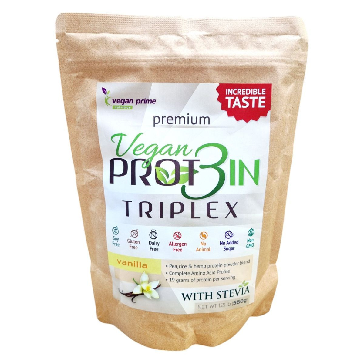 A Vegan PROT3IN TRIPLEX egy vegán vaníliaízű fehérje alapú italpor, amely borsó-, rizs- és kendermagfehérje kombinációját tartalmazza. Könnyen emészthető és változatosan felhasználható, hozzájárulhat a napi fehérjebevitelhez.
