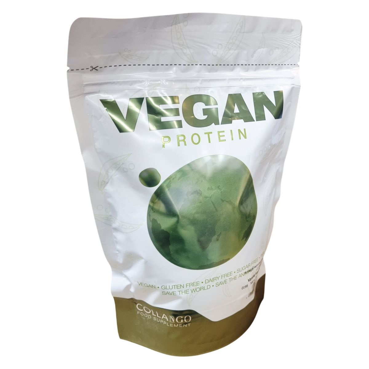 A Collango Vegan Protein egy borsófehérje-alapú étrend-kiegészítő, amely természetes és különböző ízekben érhető el, például natúr, vanília, csokoládé és málna. Az összetevők között szerepel az L-metionin és a B12-vitamin, amely a cianokobalamin formájában található meg. Az édesítés steviolglikozidokkal történik, így a termék hozzáadott cukrot nem tartalmaz. Egészséges életmódot támogató vegán étrendhez ajánlott, amely gluténmentes és tejterméket sem tartalmaz. A termék előállítása olyan üzemben történik, ahol tej, tojás, glutén, szója, földimogyoró, diófélék és zeller összetevőket is feldolgoznak. A tápértékadatok szerint magas a fehérjetartalma, valamint B12-vitamin és L-metionin forrása lehet, energiát és fontos tápanyagokat szolgáltatva a szervezetnek.