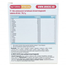 Amino Komplex – 17-féle aminosavat tartalmazó tabletta, 60 darabos kiszerelés. A készítmény 17 különböző aminosavat tartalmaz, amelyek támogathatják az izomnövekedést, a regenerációt és a sejtek megújulását, hozzájárulnak a fehérjeszintézishez, optimalizálják az anyagcserét, valamint megfelelő energiával látják el a szervezetet, segítve a fizikai teljesítmény javítását és az izomfáradtság csökkentését. Az L-lizin, L-leucin, L-fenilalanin és L-arginin hozzájárulhatnak az immunrendszer erősítéséhez és a sebgyógyulás támogatásához. 60 napi adag. Minőségét megőrzi: a doboz alján jelzett időpont (hónap, év) végéig.