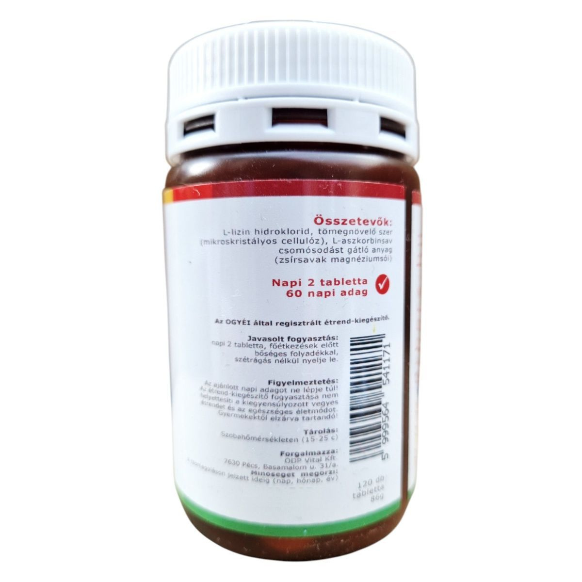 Ez a termék L-lizint és C-vitamint tartalmaz, amelyek hozzájárulhatnak a normál energiatermelő anyagcsere-folyamatokhoz és a fehérjeépítéshez. A napi adag két tabletta, amely 1000 mg L-lizint és 50 mg C-vitamint biztosíthat.