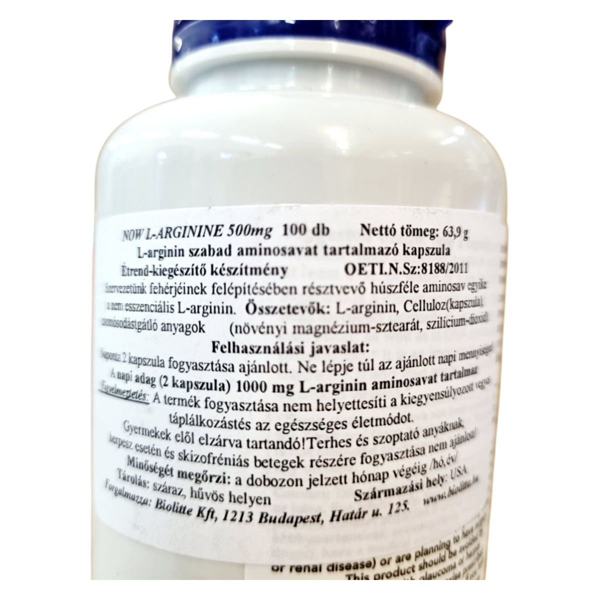 L-arginin, kapszulahéj (hidroxipropil-metilcellulóz – növényi eredetű), növényi forrásból származó magnézium-sztearát, szilícium-dioxid.