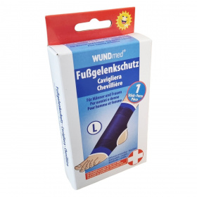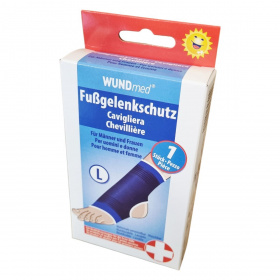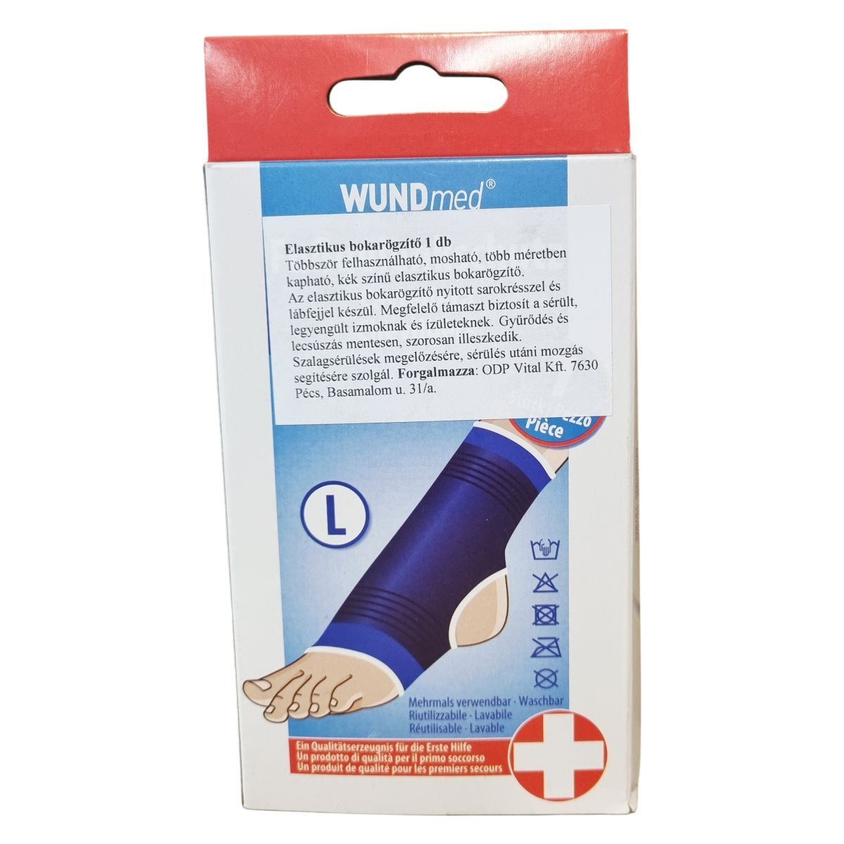 A WUNDmed elasztikus bokarögzítő kék színű, több méretben elérhető termék férfiak és nők számára. Minőségi elsősegély-ellátásra készült eszköz, mely újrafelhasználható és mosható. A termék nyitott sarok-résszel illetve lábfejjel rendelkezik, ezáltal biztosítva kényelmes viseletet. A stabilitás és a támasztás elősegíti a bokaszalagok védelmét és a gyógyulási folyamatot. Forgalmazza az ODP Vital Kft., gyártója a Wundmed GmbH & Co. KG, amely a minőség garanciája.