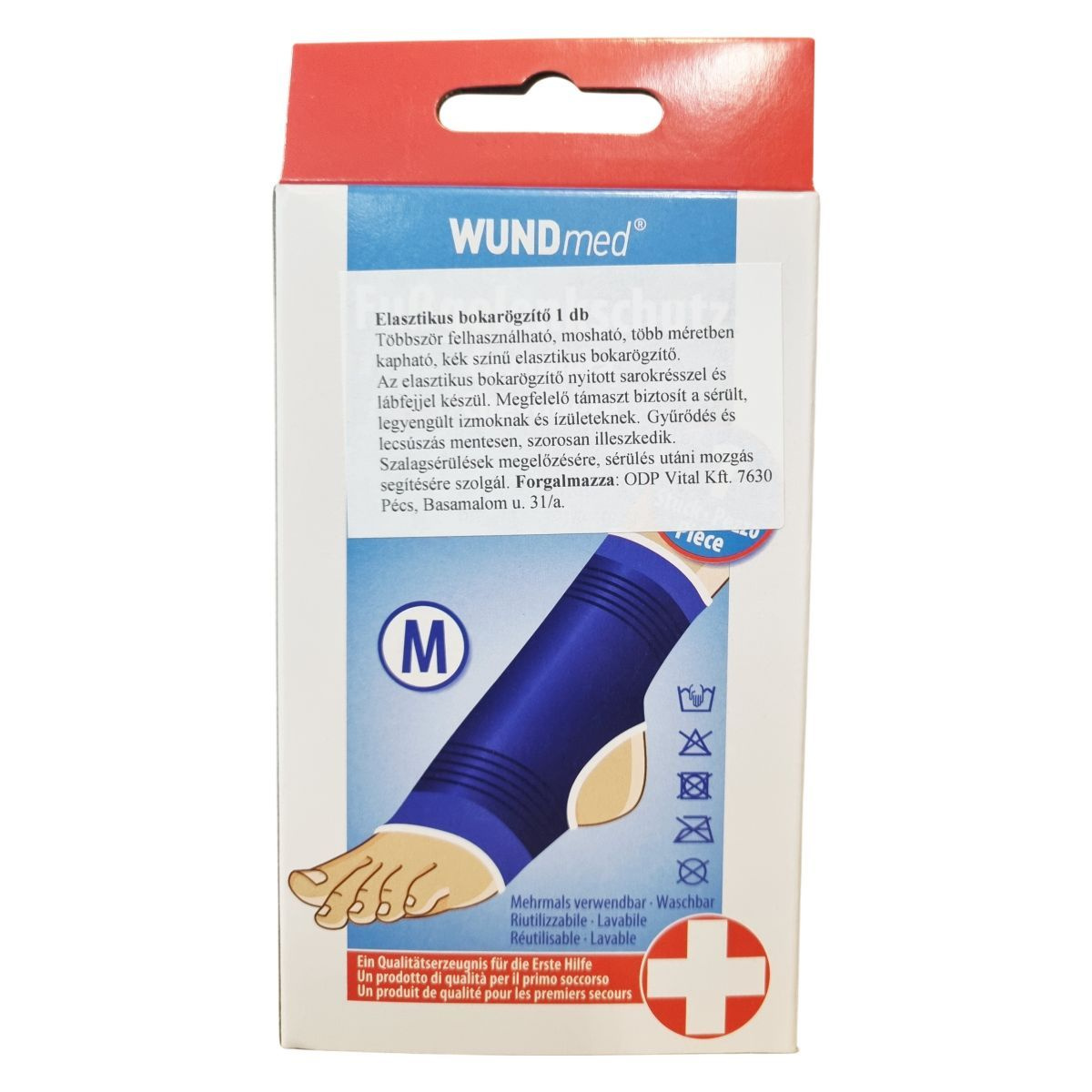 A WUNDmed® elasztikus bokarögzítő kék színű, nyitott sarokrésszel és lábfejjel készül, amely gyűrődés- és lecsúszásmentesen szorosan illeszkedik. Többször felhasználható és mosható, több méretben elérhető, férfiak és nők számára egyaránt alkalmas. Kiváló minőségű termék elsősegélyhez, amely hatékony támaszt nyújt bokasérülések esetén, elősegítve a gyógyulást és csökkentve a további sérülések kockázatát.