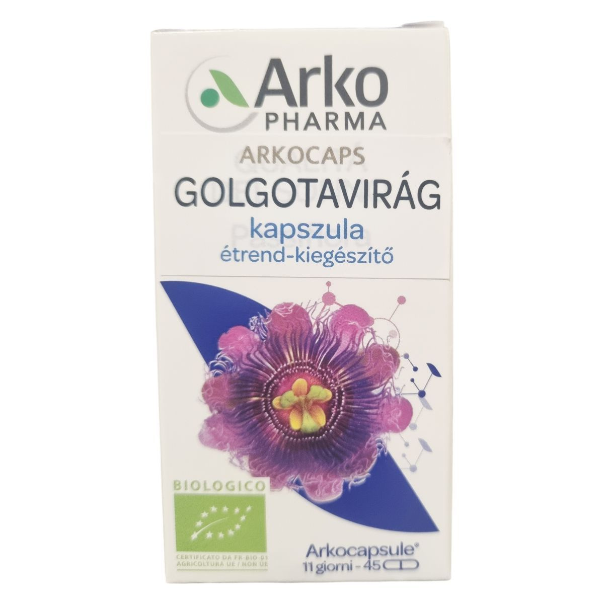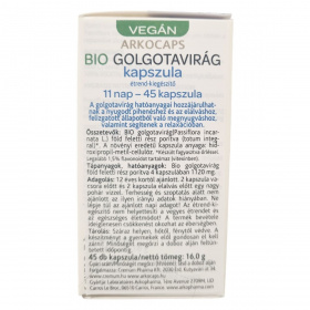 Az Arkocaps® Golgotavirág kapszula bio golgotavirág (Passiflora incarnata L.) föld feletti részét tartalmazó étrend-kiegészítő. A növényi hatóanyag hozzájárulhat a relaxációhoz, a nyugodt pihenéshez és az elalvás elősegítéséhez, valamint segítheti a felizgatott állapotból való megnyugvást. A gyártáshoz fagyasztva őrlési technológiát alkalmaznak, mely biztosítja a hatóanyagok megőrzését, így a készítmény legalább 1,5% flavonoidot, főként vitexint tartalmaz. A kapszula növényi eredetű, hidroxi-propil-metil-cellulóz alapú, így a termék vegán és bio tanúsítvánnyal rendelkezik. Az adagolás 12 éves kortól javasolt, és a termék szedése ideiglenesen csökkenést okozhat az éberségben. Terhes és szoptató nők számára nem ajánlott. A termék nem helyettesíti a kiegyensúlyozott étrendet és az egészséges életmódot. Tárolása száraz, hűvös és sötét helyen ajánlott, gyermekektől elzárva.