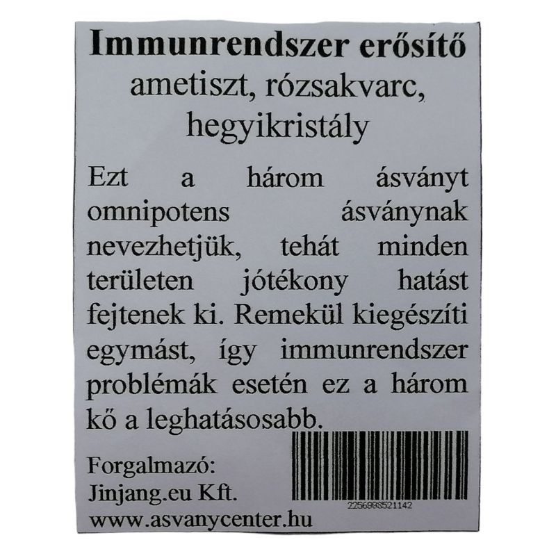 Immunrendszer erősítés/általános erősítés: rózsakvarc, ametiszt, hegyikristály. Ezt a három ásványt omnipotens ásványnak nevezhetjük, tehát minden területen jótékony hatást fejtenek ki. Remekül kiegészíti egymást, így immunrendszer problémák esetén ez a három kő a leghatásosabb.