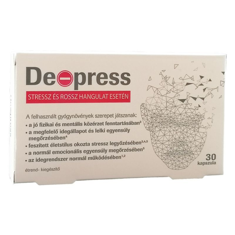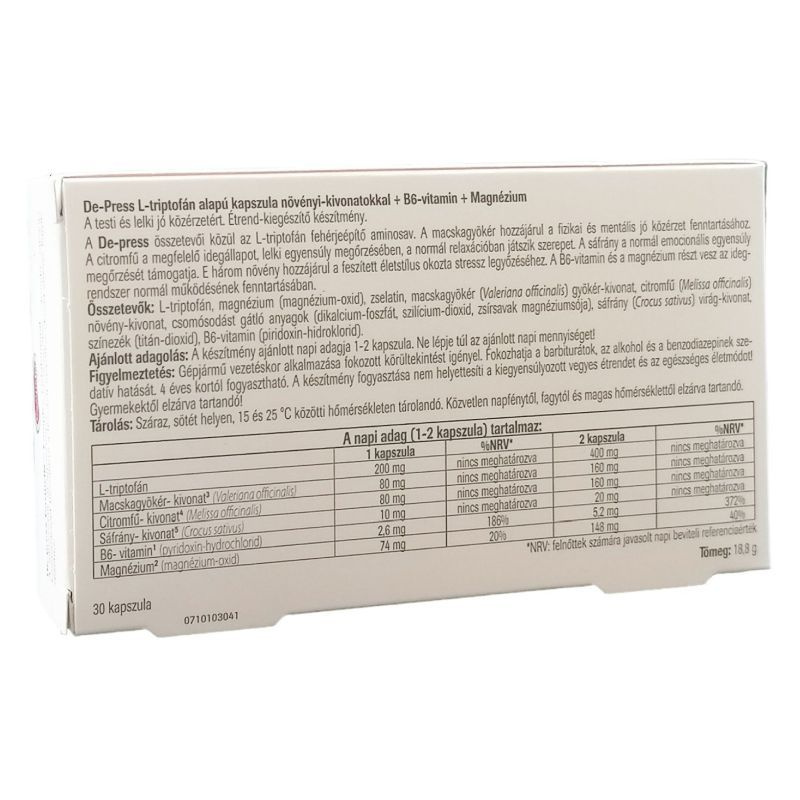 De-Press kapszula L-triptofán alapú kapszula növényi-kivonatokkal + B6 + Magnézium.