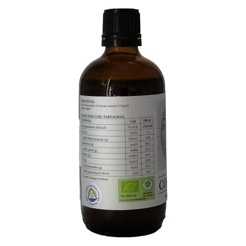 Összetétel: bio kínai hernyógomba gomba (Cordyceps sinensis): 0,125 g / ml, glicerin 0,8 g / ml, 85% poliszacharid tartalom.