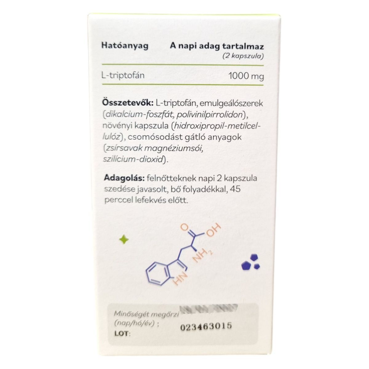 Az L-triptofán (L-tryptophan) esszenciális aminosav, amelyet a szervezet nem képes előállítani, ezért táplálkozással kell biztosítani a bevitelét. Fontos szerepet játszik több biológiailag aktív molekula – például a szerotonin neurotranszmitter és a melatonin hormon – szintézisében. Ezek az anyagok kapcsolatba hozhatók az idegrendszer működésével, a hangulati folyamatokkal és az alvás-ébrenlét ciklus szabályozásával. A triptofán részt vehet továbbá a niacin (B3-vitamin) szintézisében is. Étrend-kiegészítőként gyakran alkalmazzák az idegrendszer élettani működésének támogatására. Megfelelő adagolás mellett általában biztonságosnak tekinthető, azonban bizonyos gyógyszerekkel kölcsönhatásba léphet. Egyéni egészségügyi állapot vagy gyógyszerszedés esetén javasolt szakemberrel konzultálni.