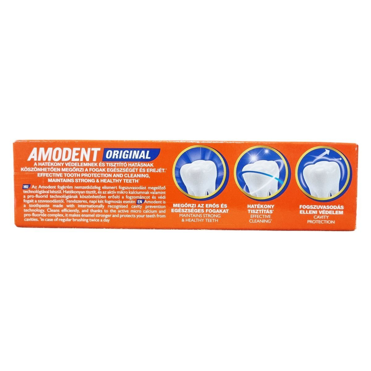 Az Amodent Original fogkrém nemzetközileg elismert fogszuvasodást megelőző technológiával készül. Hatékony tisztítási és fluoralapú védelmet nyújt, aktív mikro kalcium és pro-fluorid technológiájának köszönhetően erősíti a fogzománcot, és védi a fogakat a szuvasodástól rendszeres, napi kétszeri használat esetén. A fogkrém 100 ml kiszerelésben kapható, és hatóanyagának köszönhetően megbízható védelem nyújt a fogak számára. Made in Vietnam.