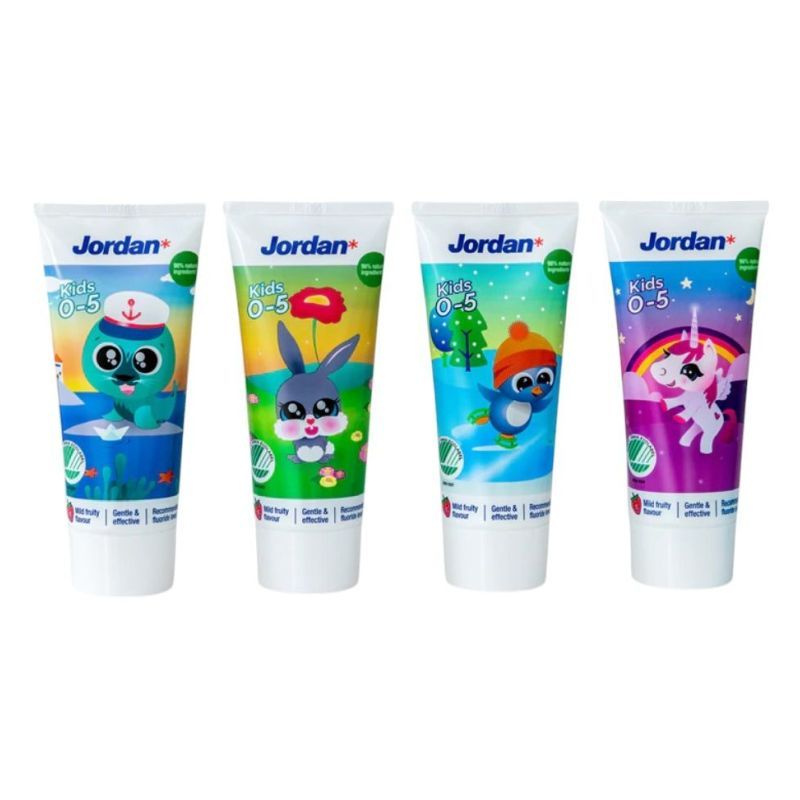 Tejfogakhoz való Jordan Kids fogkrém gyengéd formulával és gyümölcsös ízzel 0-5 éves gyerekeknek. Az első tejfogak különleges törődést igényelnek, ezért a Jordan fogkrém az ajánlott flourid-szintet tartalmazza és nem tartalmaz SLS-t.