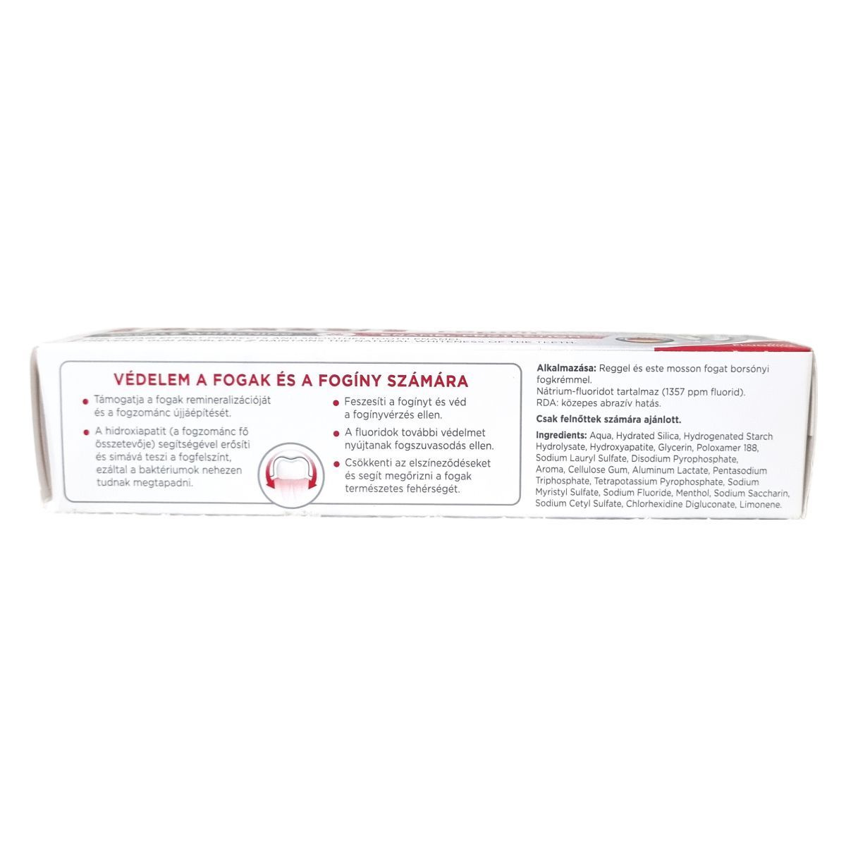 Ez a fogkrém támogatja a fogak remineralizációját és a fogzománc újjáépítését. A hidroxiapatit erősíti és simává teszi a fogfelszínt, így a baktériumok nehezebben tapadnak meg. Emellett feszesíti a fogínyt és véd a fogínyvérzés ellen, míg a fluorid a fogszuvasodás megelőzésében nyújt további védelmet. Csökkenti az elszíneződéseket, és megőrzi a fogak természetes fehérségét. Közepes abrazív hatású (RDA). A termék Németországban készült.