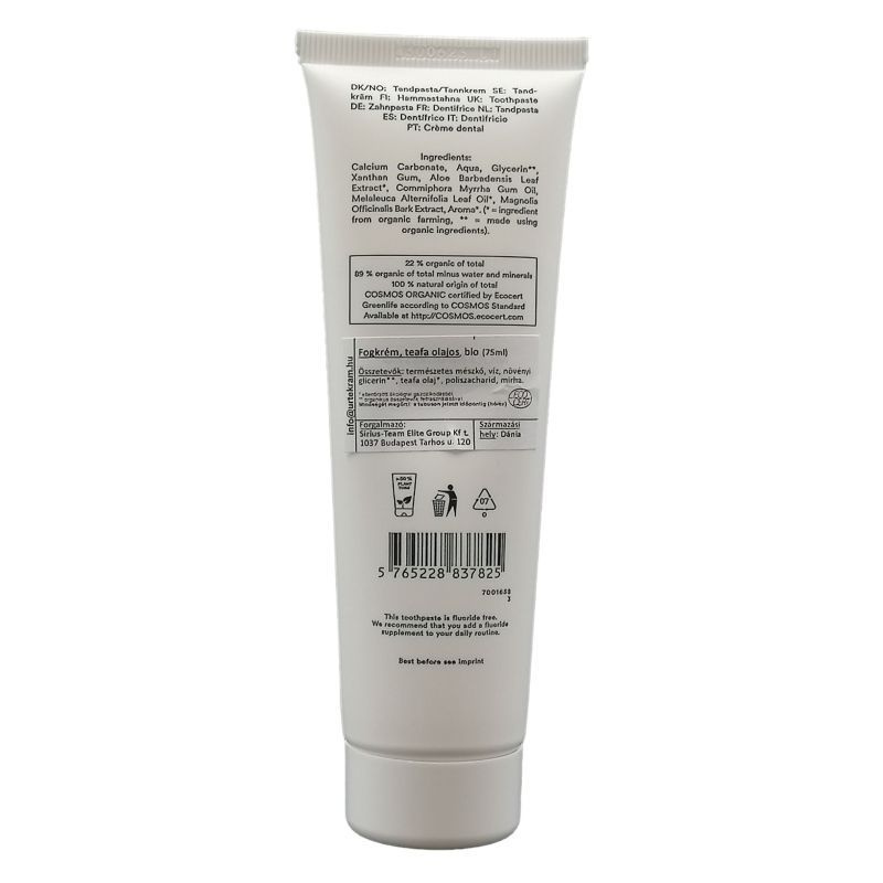 Mérsékelt hab védi szájának érzékeny nyálkahártyáját az irritációtól. EcoCert minősítéssel rendelkező termék, melyet természetesen nem teszteltek egyik fázisában sem állatokon. Nátriumfluorid-mentes, így akár homeopátiás kezelések mellett is ajánlott. A teafa csodás tulajdonságaival rendelkező fogkrémet ajánljuk mindenkinek, elpusztítja nemcsak a gombákat és a baktériumokat, de még a vírusokat is.