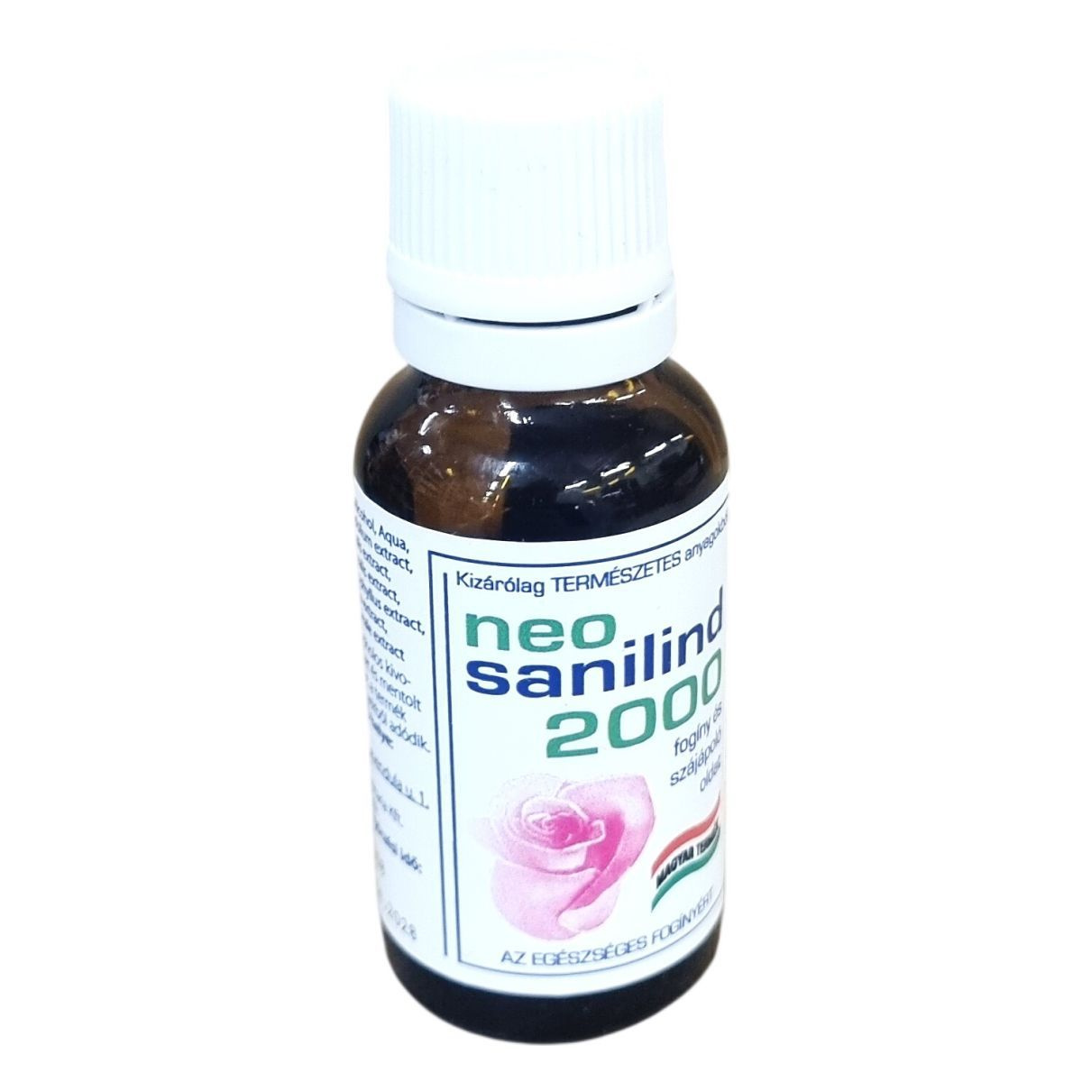 A neo sanilind 2000 teljesen természetes anyagokból készült, Magyarországon gyártott fogíny- és szájápoló oldat. A termék gyógynövények alkoholos kivonatát tartalmazza, amelyek gyulladáscsökkentő és összehúzó hatásukkal ápolják az érzékeny fogínyt. Használatával biztosítható a szájhigiénia és fenntartható a friss lehelet. A készítmény nem tartalmaz színezéket és mentolt, a termék színe a benne lévő növényi összetevőkből ered. A termék 18 ml kiszerelésű, és kizárólag természetes alapanyagokból készült. Felhívjuk a figyelmet, hogy a termék alkoholt tartalmaz, gyermekektől elzárva kell tartani, és nem ajánlott azok számára, akik érzékenyek valamely növényi összetevőre.