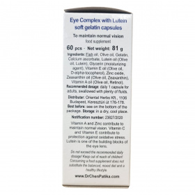 A Szem-Komplex Luteinnel étrend-kiegészítő hozzájárulhat a normál látás fenntartásához, valamint támogathatja a szem egészségét antioxidáns hatóanyagaival.