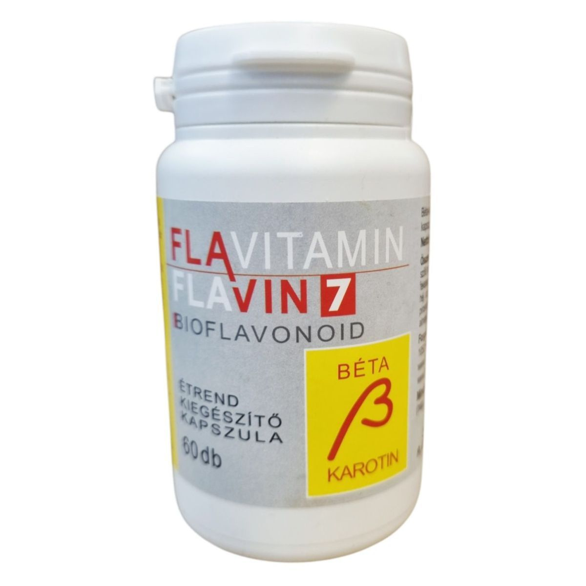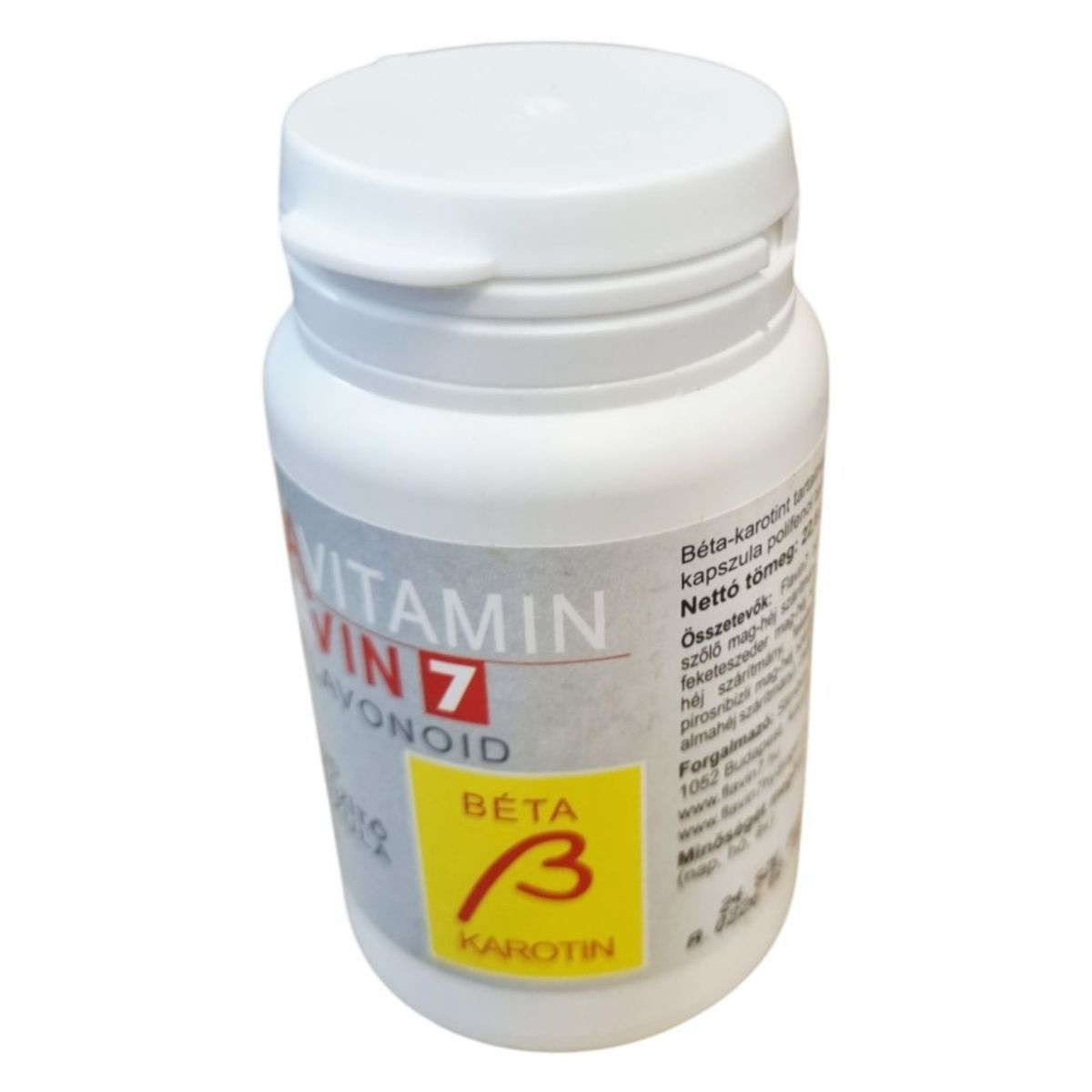 A FLAVITAMIN FLAVIN7 BIOFLAVONOID kapszula béta-karotint és polifenolokat tartalmazhat, amelyek hozzájárulhatnak a látás és a bőr normál állapotának fenntartásához.
