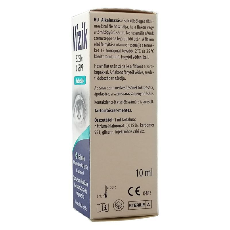 A tartósítószer-mentessége miatt a Vizik Nedvesítő szemcsepp hosszútávú alkalmazás esetén is nagyon jól tolerálható és kontaktlencsét viselők számára is javasolt. A kontaktlencséket nem kell kivenni a Vizik Nedvesítő szemcsepp használata előtt.