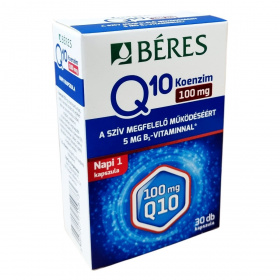 A Béres Q10 Koenzim 100 mg kapszula KANEKA Q10-et tartalmaz, amely fermentációval (élesztős erjesztéssel) előállított, gyógyszerkönyvi minőségű, all-transz formájú hatóanyag. A koenzim Q10 egy vitaminszerű anyag, amely a szervezet minden élő sejtjében jelen van; koncentrációja a szívben, a májban, a vesében és az izomszövetben a legmagasabb. Az életkor előrehaladtával a szervezet Q10 termelése fokozatosan csökken, ezért ezen időszakban javasolt fokozottan ügyelni a megfelelő bevitelre. A B1-vitamin hozzájárul a szív megfelelő működéséhez.