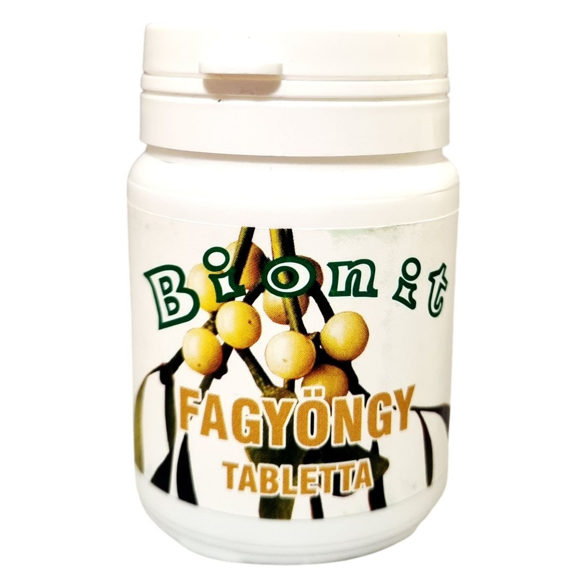 A Bionit Fagyöngy tabletta Magyarországon készül, tiszta tömege mintegy 30 g, ami körülbelül 90 tablettának felel meg. A termék összetevői közé a szőlőcukor és a fehér fagyöngy granulátum tartoznak, ami tablettánként 160 mg hatóanyagnak felel meg. Tápértéke alacsony zsír- és változó szénhidráttartalommal rendelkezik. A csomagolás kb. 59,16 kcal energiát tartalmaz. A termék nem tartalmaz tartósítószert, színezéket és aromákat, így természetes összetevőkkel támogatja a szervezet működését. A napi ajánlott adagolás 2-3 alkalommal 2-2 tabletta, amelyet bő folyadékkal, szétrágás nélkül kell lenyelni.