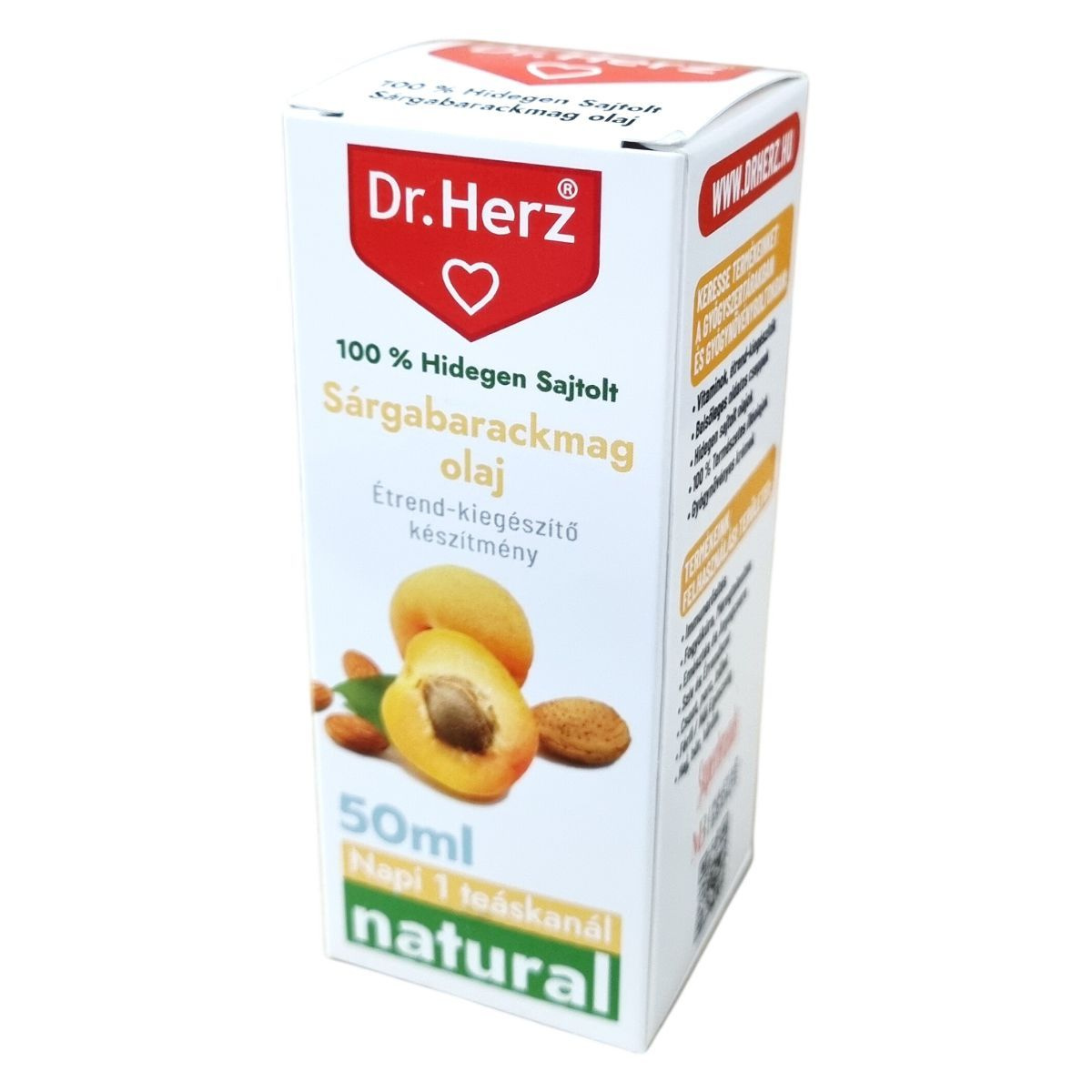 A Dr. Herz 100 % hidegen sajtolt sárgabarackmag olaj étrend-kiegészítő készítmény 50 ml kiszerelésben kapható. Termékeiket gyógyszertárakban és gyógynövényboltokban lehet megvásárolni, melyek között szerepelnek vitaminok, belsőleges oldatos cseppek, hidegen sajtolt olajok, 100 % természetes illóolajok és gyógynövényes krémek is. A termék használata immunerősítéshez, fogyókúrához, méregtelenítéshez, emésztés és anyagcsere támogatásához, valamint a szív- és érrendszer, csontok, porcok, ízületek, továbbá férfi és női egészség illetve haj, bőr és köröm ápolásához javasolt. A termék a Superbrands és MB Magyar Brands díjakat is elnyerte, ami a minőség és megbízhatóság garanciája lehet.
