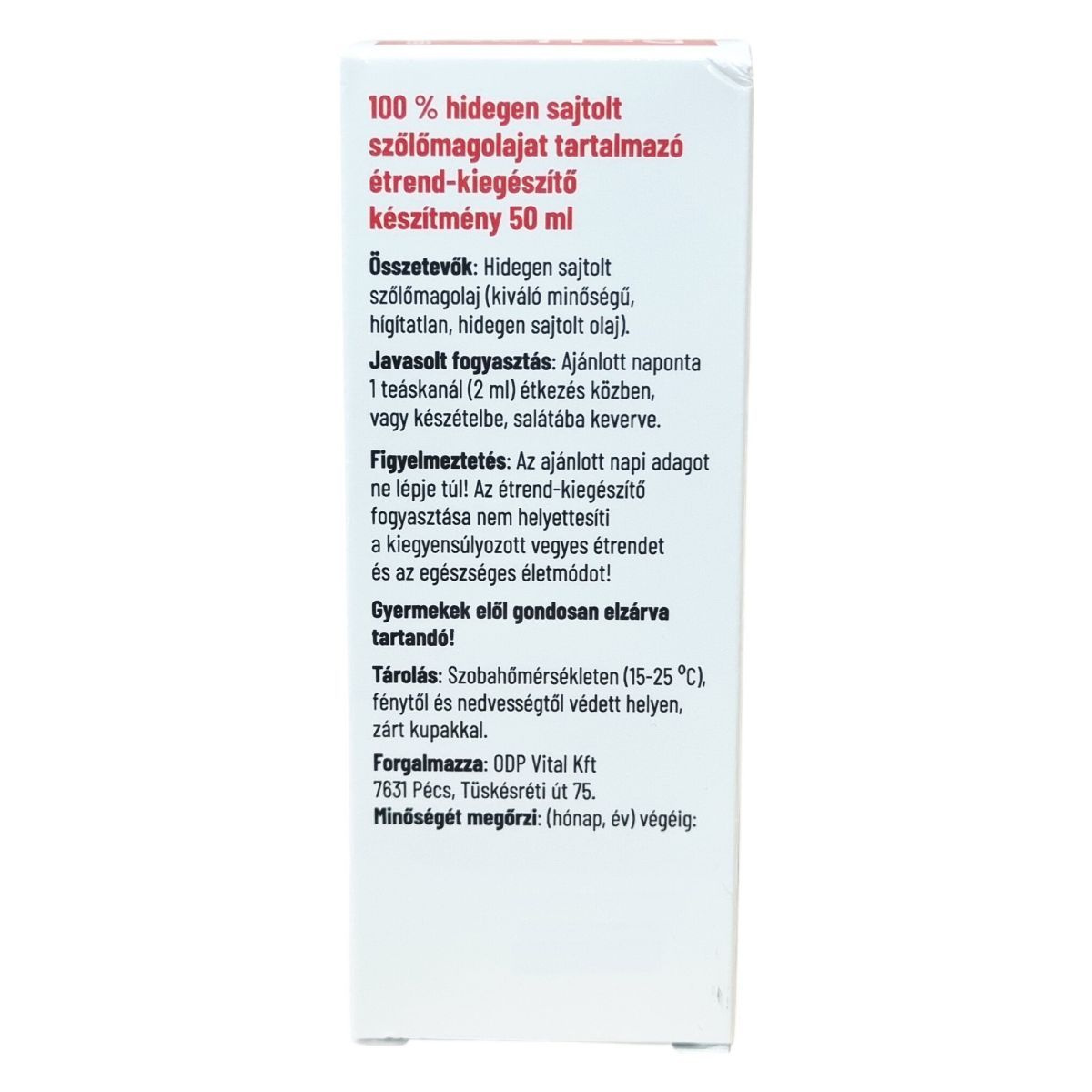 Hidegen sajtolt szőlőmagolaj (2 ml)