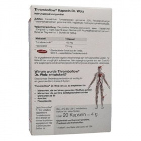 A Thromboflow® Dr. Wolz a normál vérlemezkefunkció támogatására lett kifejlesztve, ami fontos a szív- és érrendszer egészsége szempontjából. Ajánlott azok számára, akik odafigyelnek az egészséges véráramlásra és érrendszerük állapotára, különösen 55 év felettieknek, dohányzóknak és utazóknak. A készítmény vízoldékony paradicsomkivonatot (WSTC II) tartalmaz, amelynek hatása tudományosan igazolt. A napi ajánlott mennyiséget nem szabad túllépni. Kisgyermekektől elzárva tartandó. Az étrend-kiegészítő nem helyettesíti a kiegyensúlyozott, változatos étrendet és az egészséges életmódot.
